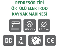 Örtüsü rutil, bazik ve selülozik karakterli olan alaşımsız, düşük alaşımlı ve paslanmaz yapıdaki çeliklerin kaynağında kullanılan 2.5-5.0 mm çapındaki elektrodlarda sürekli kaynak yapmaya olanak sağlar.